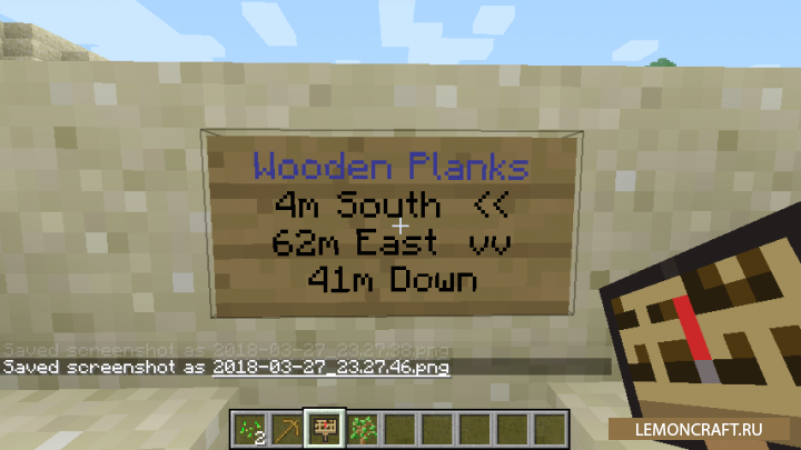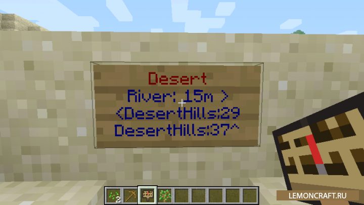 Мод The Minecraft Guidepost добавляет в игру очень полезные, информационные таблички. Данные таблички будут указывать расстояния до ближайших полезных вещей. Теперь вы без особого труда сможете определить расстояния до ближайшей руды, реки, пляжа, сундуков и других полезных вещей. Мод указывает не только расстояние, но и направление до ближайшей точки.